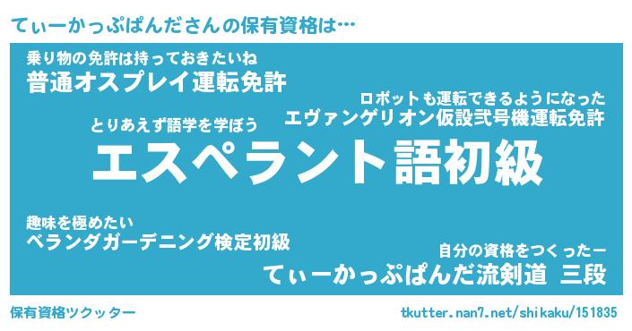| 男性向けラノベタイトル風あだ名 | 『てぃーかっぷぱんだの憂鬱』 |