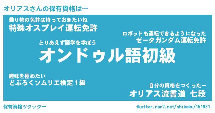 | 意味不明あだ名 | 『ペロリンオリアス』『永久保存オリアス』 |