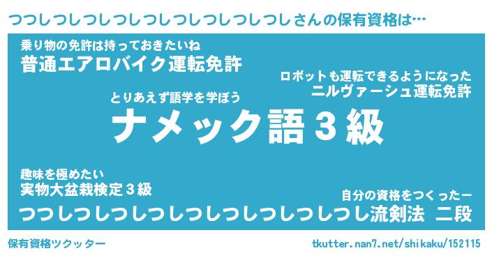 | 男性向けラノベタイトル風あだ名 | 『つつしつしつしつしつしつしつしつしつしの憂鬱』 |