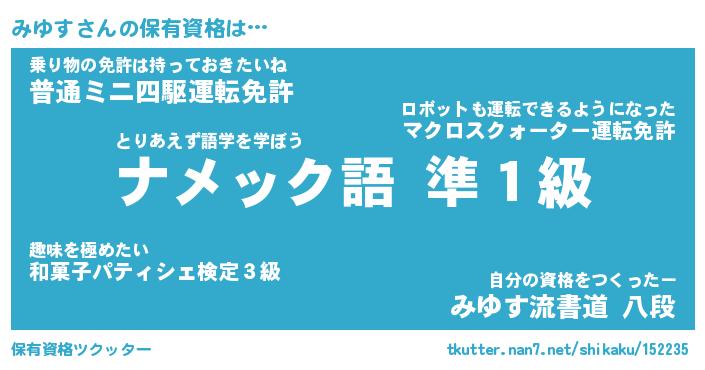 | ヘコむあだ名 | 『みゆにゅー』『つくし』『みゆ太郎』 |