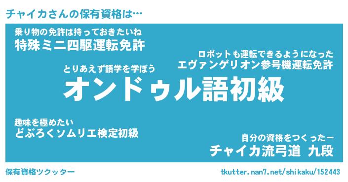 | 意味不明あだ名 | 『ペロリンチャイカ』『永久保存チャイカ』 |