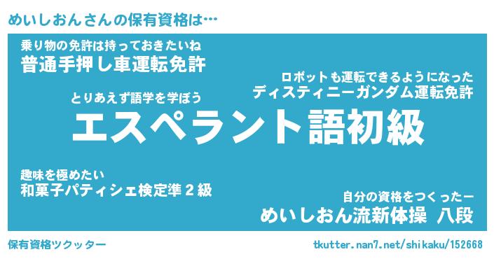 | ファンタジー風あだ名 | 『メイフェル』『エターナルメイシオンー』 |