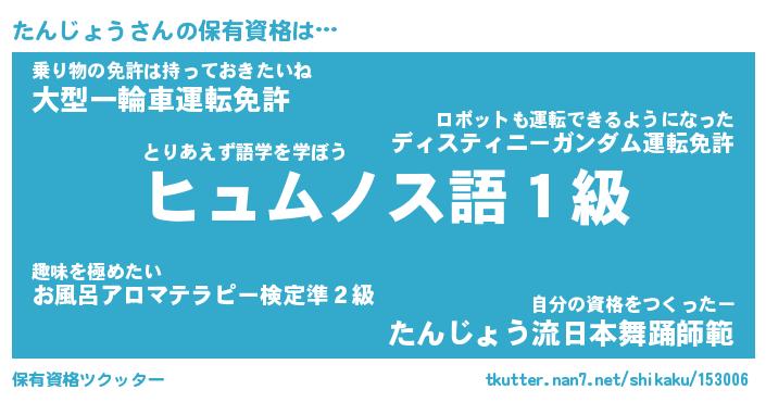 | ファンタジー風あだ名 | 『タンフェル』『エターナルタンジョウー』 |