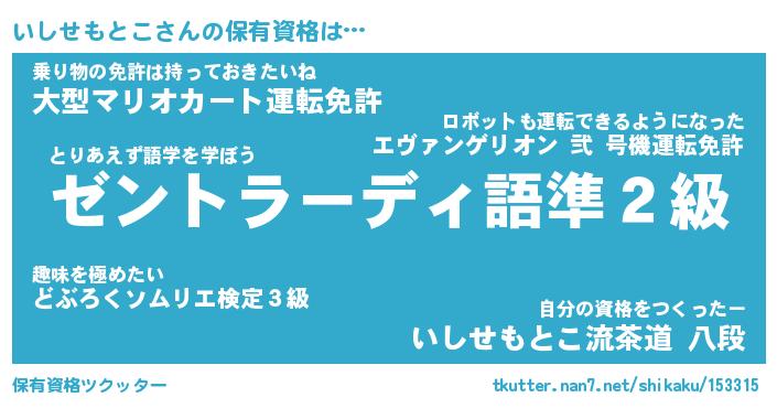 | 男性向けラノベタイトル風あだ名 | 『いしせもとこの憂鬱』 |