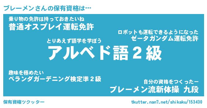 | ファンタジー風あだ名 | 『ブレフェル』『エターナルブレーメンー』 |