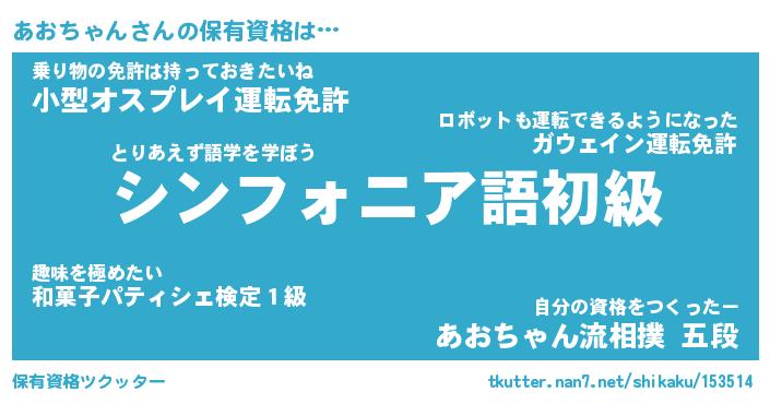 | ファンタジー風あだ名 | 『アオフェル』『エターナルアオチャンー』 |