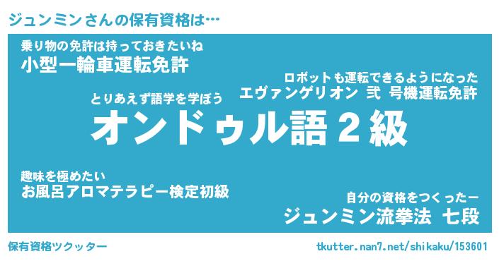 | ファンタジー風あだ名 | 『ジュフェル』『エターナルジュンミンー』 |