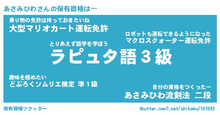| ヒーロー風カッコイイあだ名 | 『スーパーアサミヒワ』『天弓騎士アサ』 |