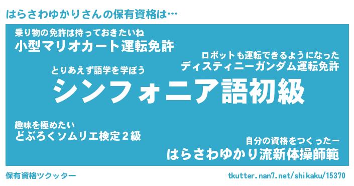 | ツイッター | はらさわゆかりさんのツイッターID『kikurage_nyan』 |