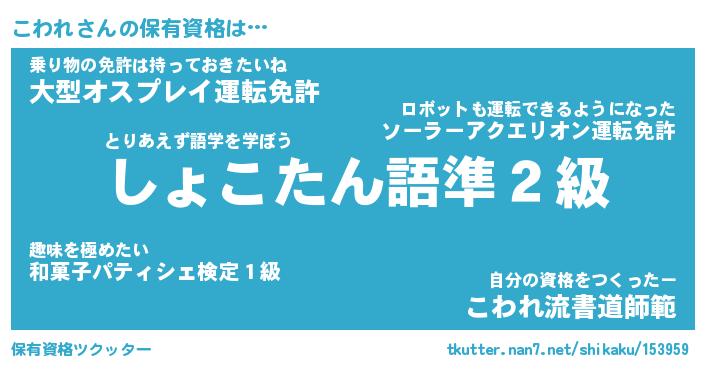 | 伝説のあだ名 | 『封印されしスナイパーこわれ』 |