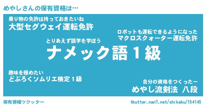 | ヘコむあだ名 | 『めやにー』『なまこ酢』『めやを』 |