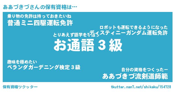 | ファンタジー風あだ名 | 『アアフェル』『エターナルアアヅキヅー』 |