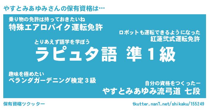 | 肩書あだ名 | 『やすとみあゆみ店長』 |