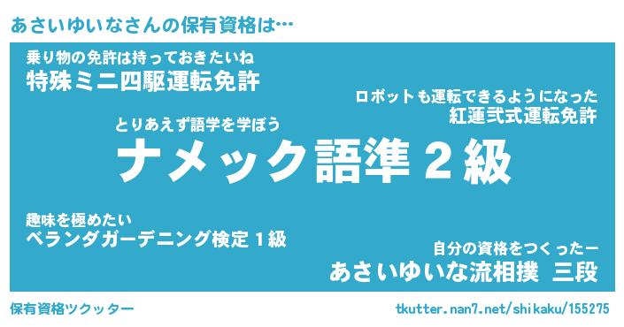 | 胡散臭い通販商品みたいなあだ名 | 『モテモテ間違いなし霊験あらたかなお札…その名も「あさいゆいな」』 |