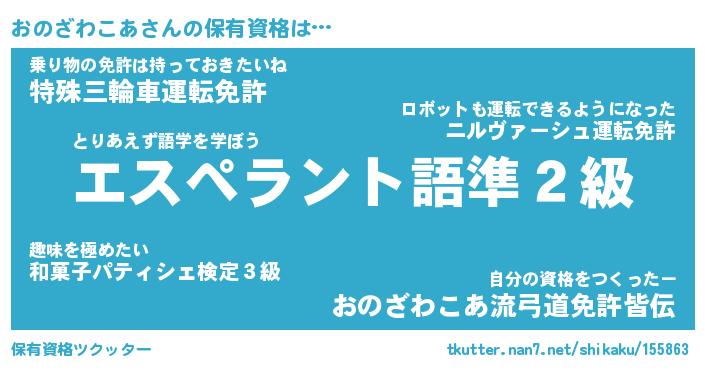 | 伝説のあだ名 | 『伝説のスナイパーおのざわこあ』 |