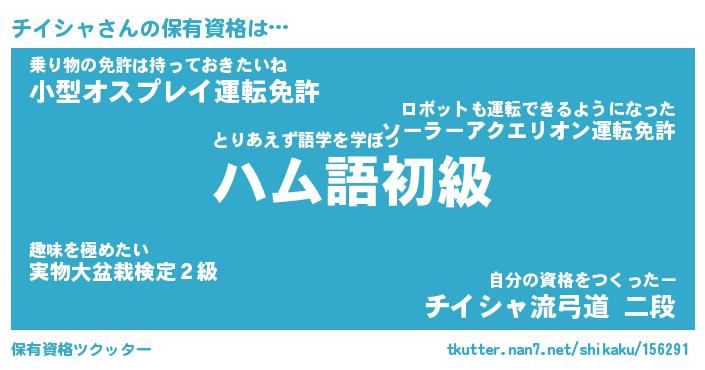 | ファンタジー風あだ名 | 『チイフェル』『エターナルチイシャー』 |