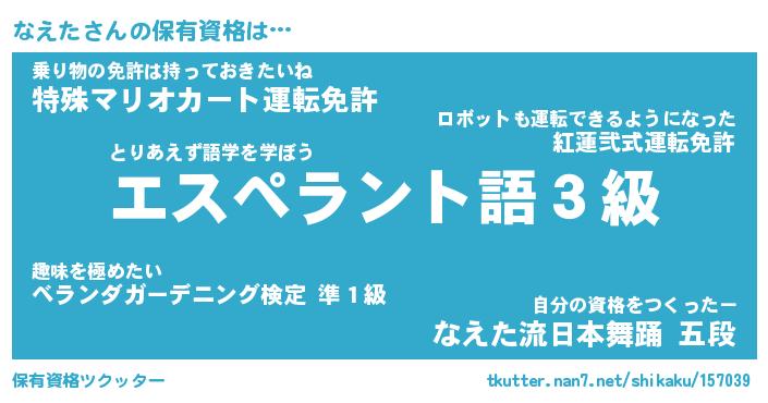 | ファンタジー風あだ名 | 『ナエフェル』『エターナルナエター』 |