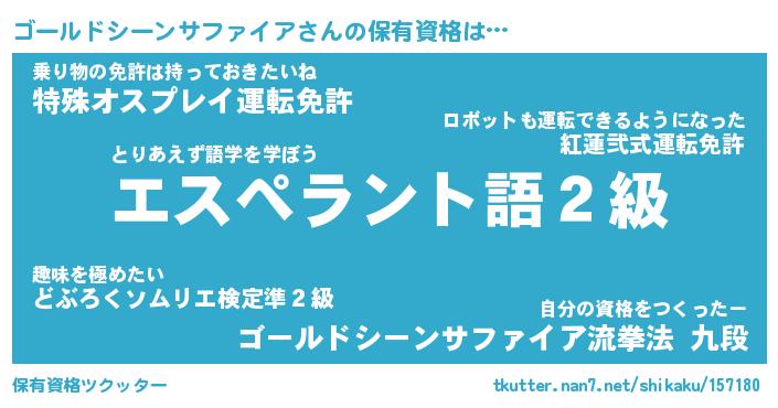 | 艦これ | 提督の名前『ゴールドシーンサファイア提督』 |