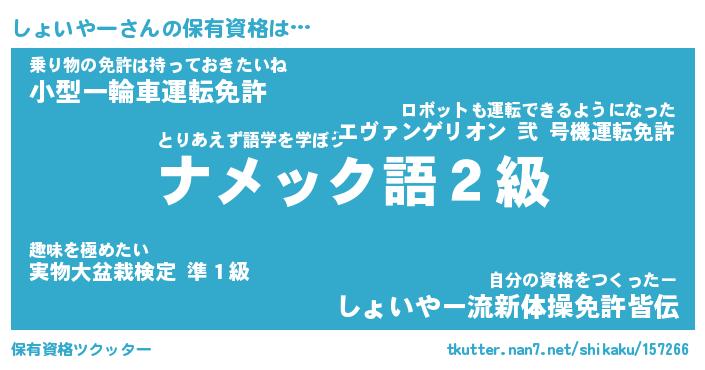| ファンタジー風あだ名 | 『ショフェル』『エターナルショイヤーー』 |