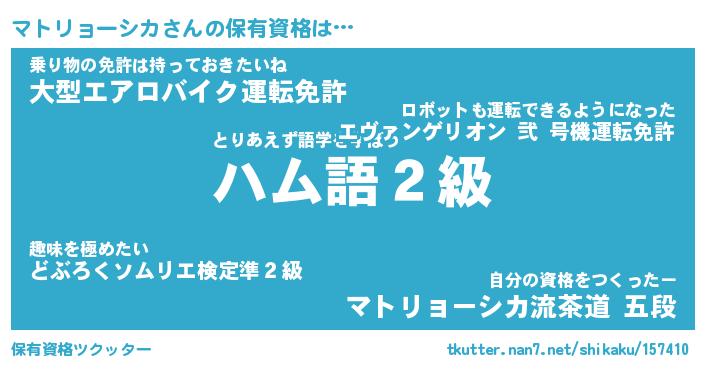 | 料理風あだ名 | 『節約★マトリョーシカと油揚げの玉子丼』 |