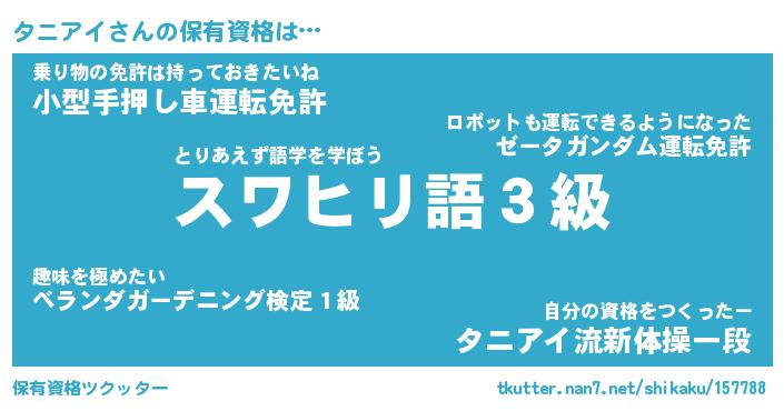 | ファンタジー風あだ名 | 『タニフェル』『エターナルタニアイー』 |