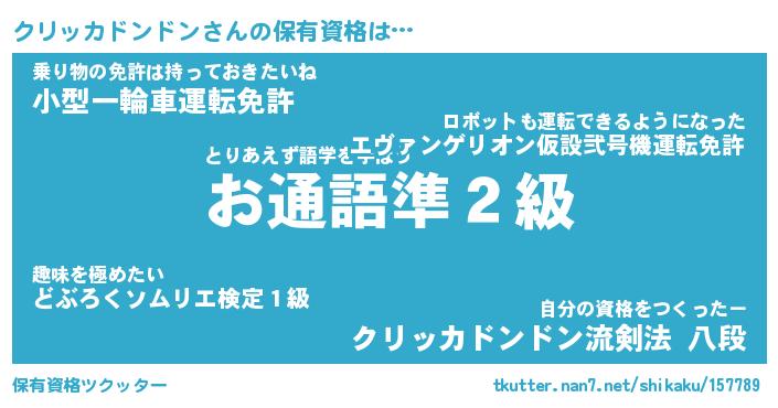 | 男性向けラノベタイトル風あだ名 | 『クリッカドンドンの憂鬱』 |