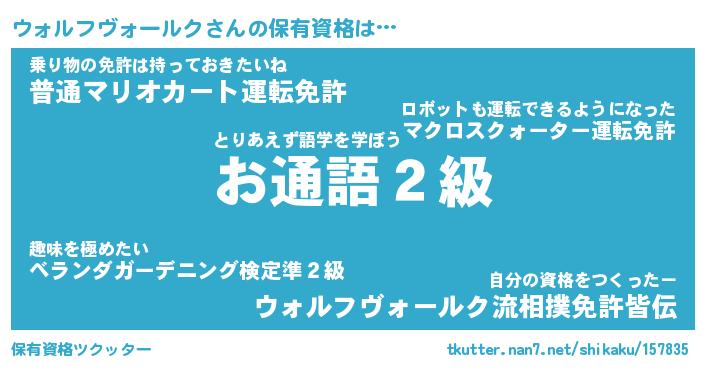 | 男性向けラノベタイトル風あだ名 | 『ウォルフヴォールクの憂鬱』 |