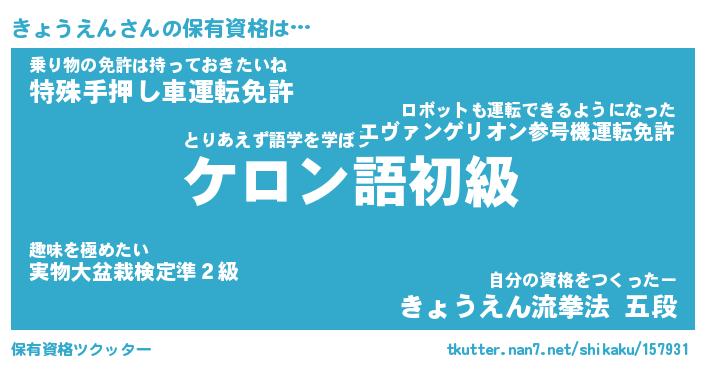 | ファンタジー風あだ名 | 『キョフェル』『エターナルキョウエンー』 |