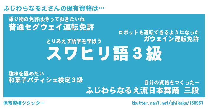 | 肩書あだ名 | 『ふじわらなるえCEO』 |