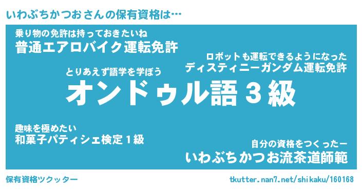 | 伝説のあだ名 | 『封印されし傭兵いわぶちかつお』 |