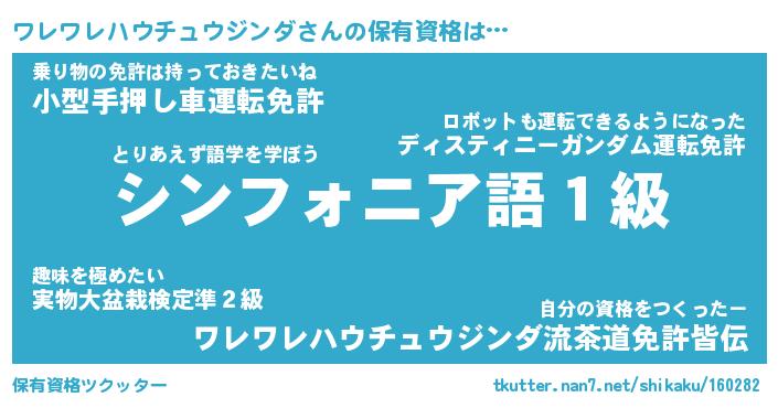 | 胡散臭い通販商品みたいなあだ名 | 『必ず成功するブレスレット…その名も「ワレワレハウチュウジンダ」』 |