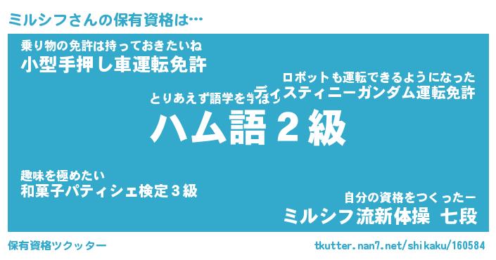 | ヒーロー風カッコイイあだ名 | 『スーパーミルシフ』『黄金騎士ミル』 |