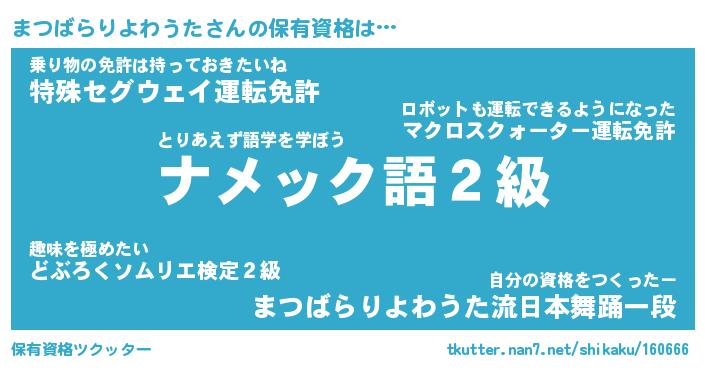| 胡散臭い通販商品みたいなあだ名 | 『モテモテ間違いなしブレスレット…その名も「まつばらりよわうた」』 |