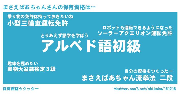 | 伝説のあだ名 | 『不死鳥のスナイパーまさえばあちゃん』 |