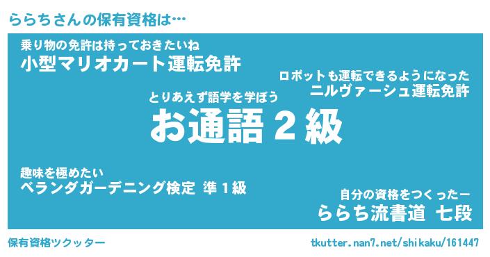 | ファンタジー風あだ名 | 『ララフェル』『エターナルララチー』 |