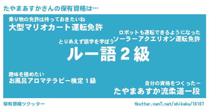 | ツイッター | たやまあすかさんのツイッターID『fukuyoka_man』 |