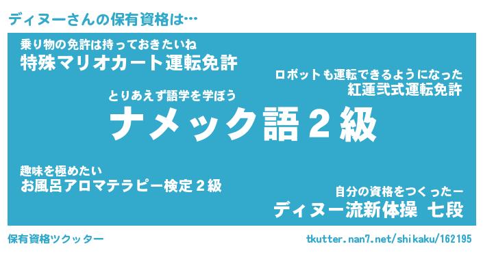 | 意味不明あだ名 | 『ペロリンディヌー』『永久保存ディヌー』 |