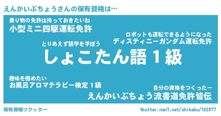 | 胡散臭い通販商品みたいなあだ名 | 『億万長者になれるブレスレット…その名も「えんかいぶちょう」』 |
