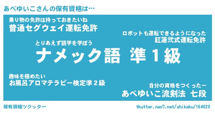 | ファンタジー風あだ名 | 『アベフェル』『エターナルアベユイコー』 |