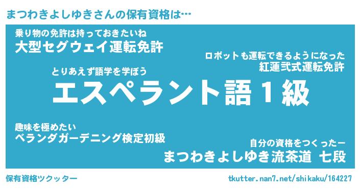 | 女子向けラノベタイトル風あだ名 | 『(仮)まつわきよしゆきのやんごとなき事情』 |
