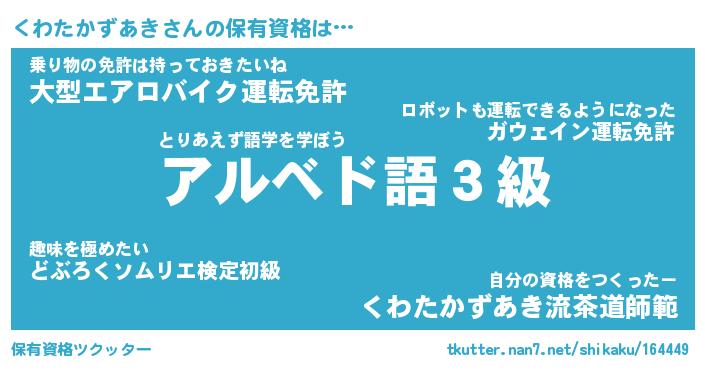 | 伝説のあだ名 | 『不死鳥の傭兵くわたかずあき』 |