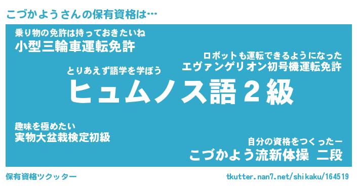 | ヒーロー風カッコイイあだ名 | 『スーパーコヅカヨウ』『天弓騎士コヅ』 |