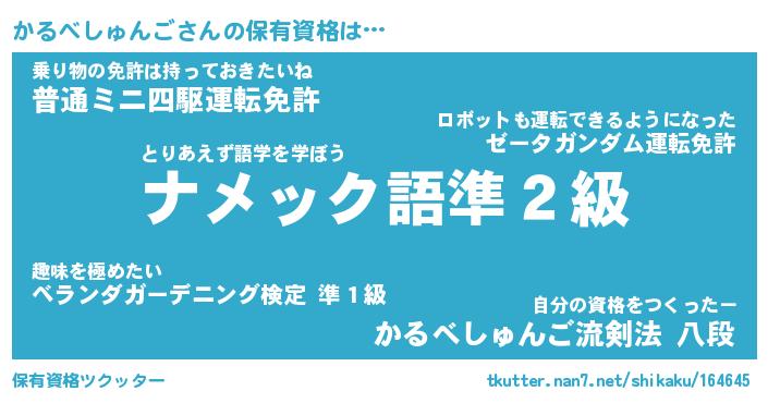 | 肩書あだ名 | 『かるべしゅんご御曹司』 |