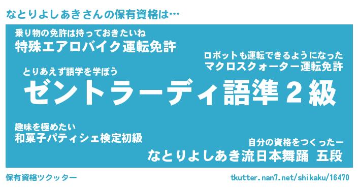 | 肩書あだ名 | 『なとりよしあき御曹司』 |