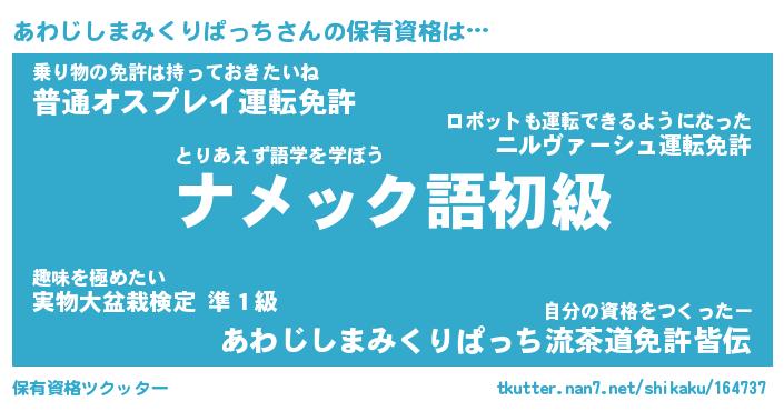 | 肩書あだ名 | 『あわじしまみくりぱっち御曹司』 |