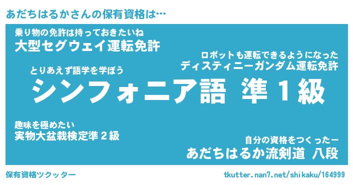 | ヒーロー風カッコイイあだ名 | 『スーパーアダチハルカ』『暗黒騎士アダ』 |