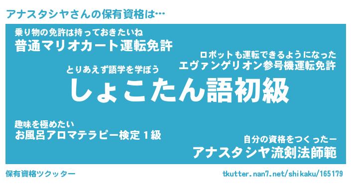| ヒーロー風カッコイイあだ名 | 『スーパーアナスタシヤ』『銀牙騎士アナ』 |