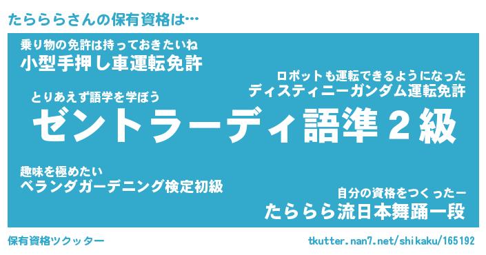 | ファンタジー風あだ名 | 『タラフェル』『エターナルタラララー』 |
