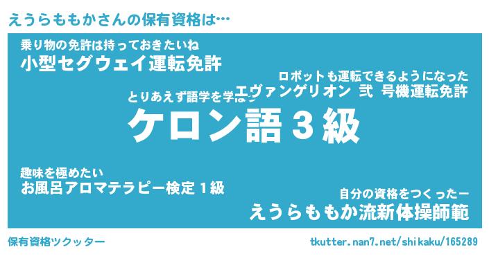 | 伝説のあだ名 | 『伝説の傭兵えうらももか』 |