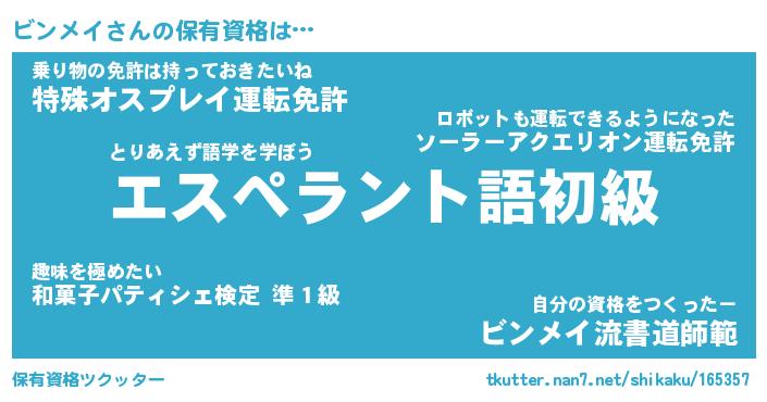 | ファンタジー風あだ名 | 『ビンフェル』『エターナルビンメイー』 |